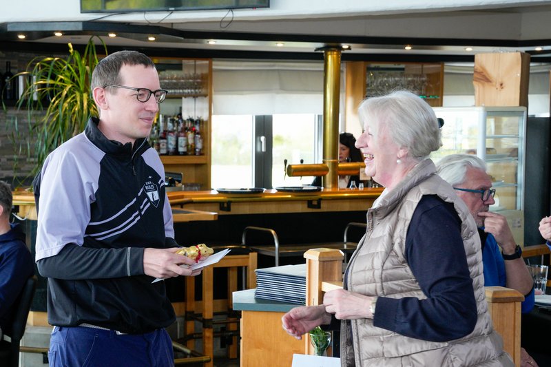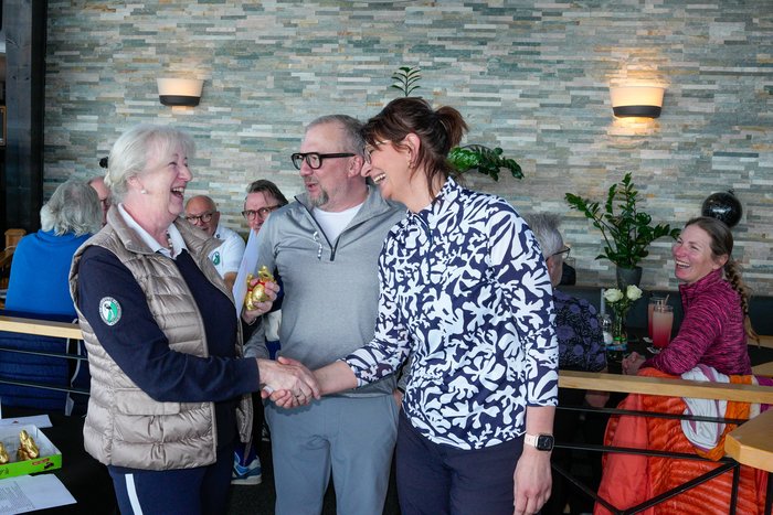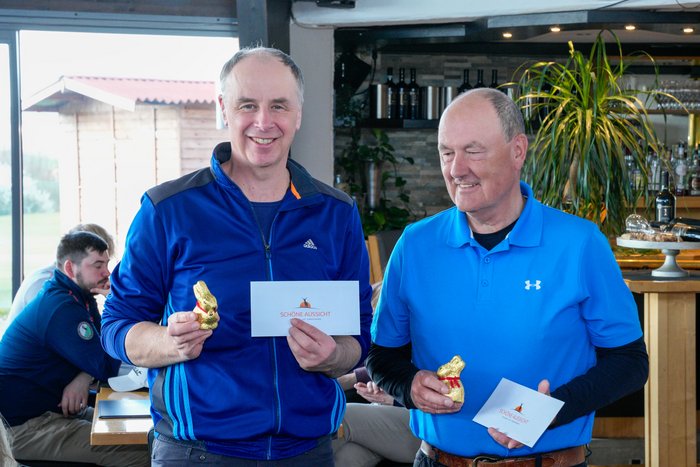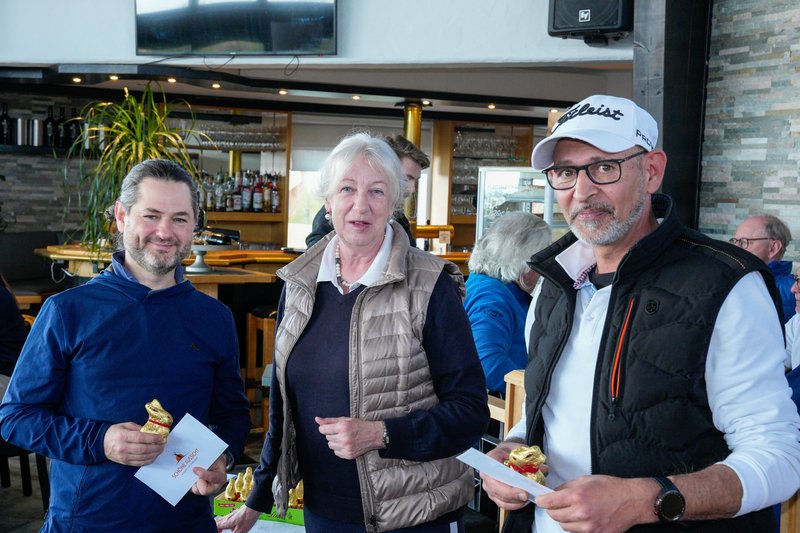 Nach gut vier Stunden fanden sich alle Golferinnen und Golfer im windgeschützten Clubhaus Restaurant Schöne Aussicht wieder ein, wo bei guter Stimmung die Siegerehrung stattfand.